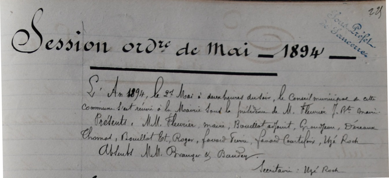 Conseil municipal de Ménétréol du 22 avril 1894 |