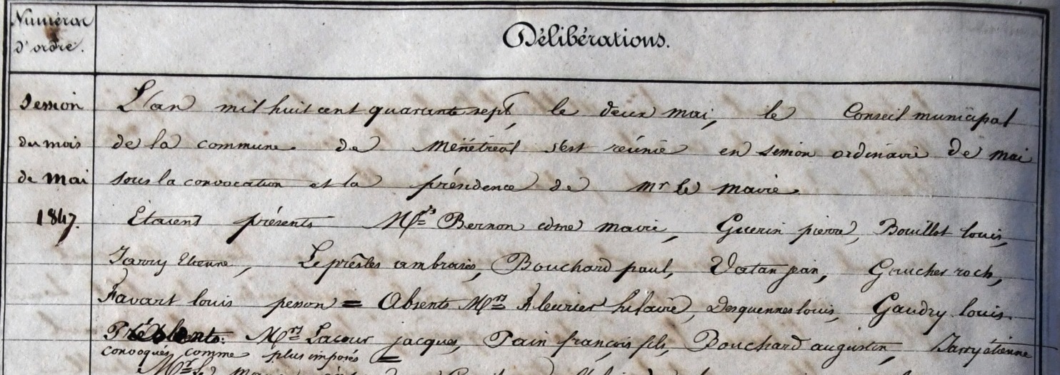 Conseil municipal de Ménétréol 2 mai 1847 |