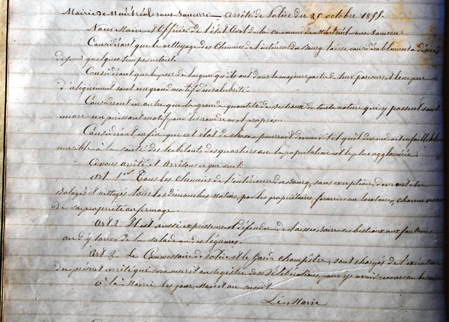 Arrêté de police municipale du 25 octobre 1855 |