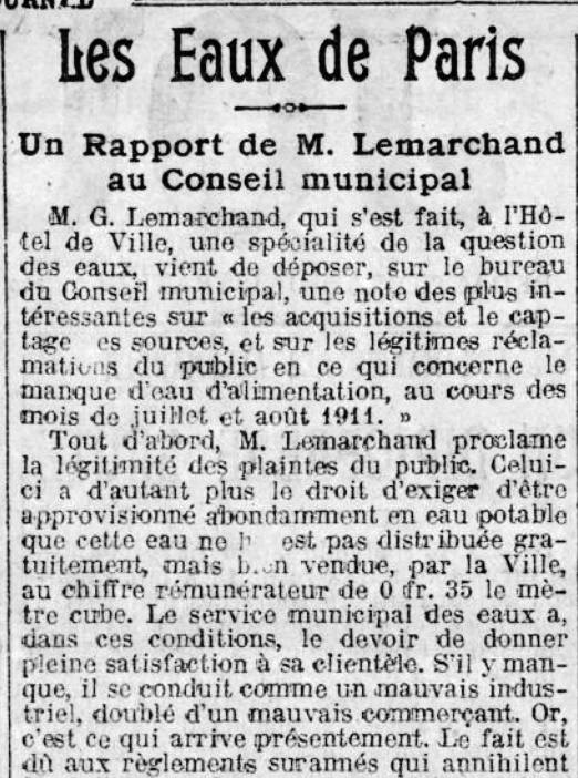La qualité des eaux dont dispose la ville de Paris laisse aussi passablement à désirer :