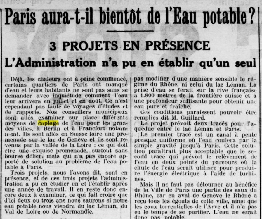 Dès avant 1858, la ville de Paris cherche de nouvelles ressources en eau, d’abord en dérivant des sources du bassin de la Seine :