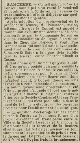 l'arrivée de l'électricité à Sancerre