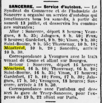 D'abord, après plusieurs essais infructueux, pour desservir le Sancerrois entre la gare (Tracy-Sancerre sur la ligne Paris Clermont) située de l'autre côté de la Loire et Sancerre |