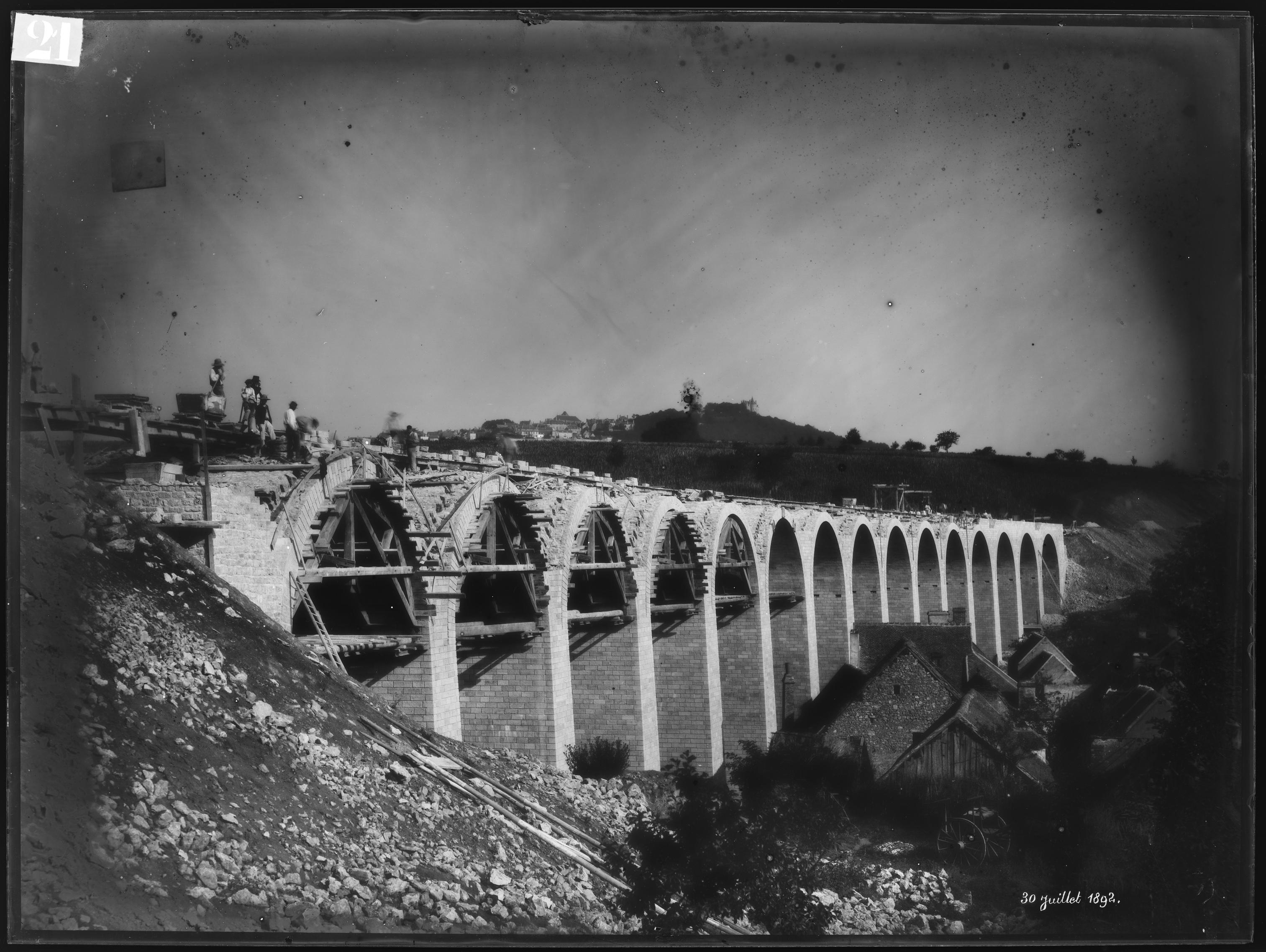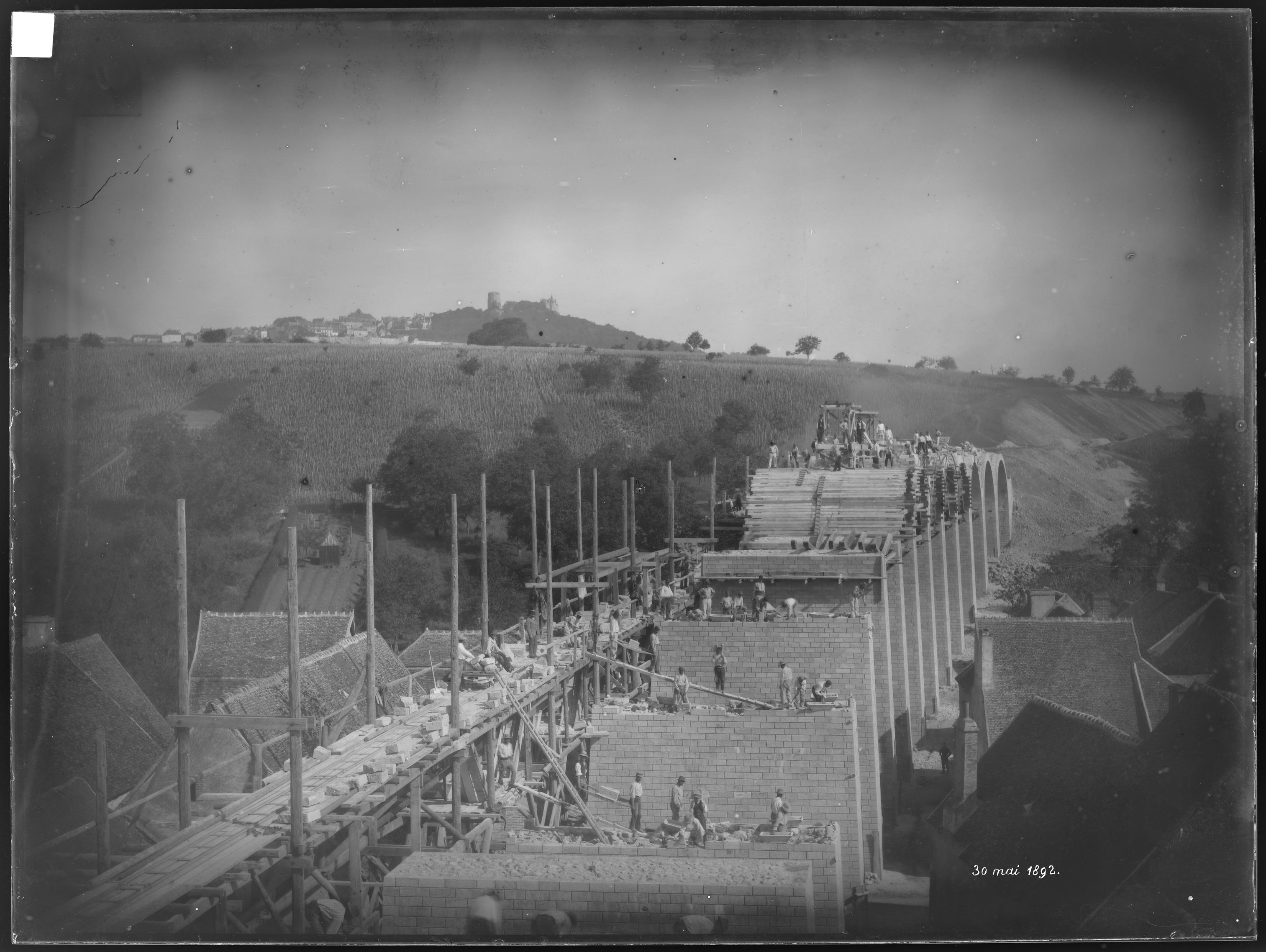 trois étapes de la construction du "pont de pierre" dan le bourg de Ménétréol