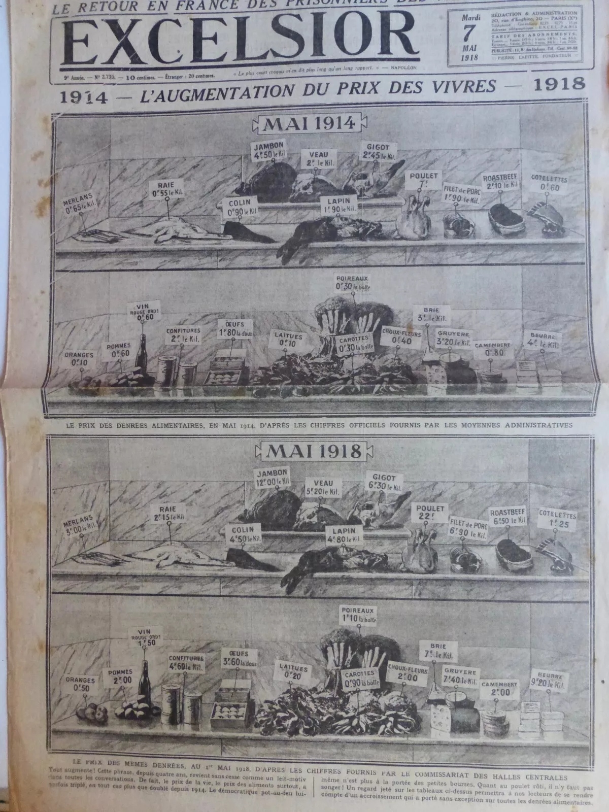 A la fin de la guerre on estime que les prix ont été en moyenne multipliés par 2 par rapport à 1914 !