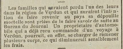 A la fin de la guerre, la demande des familles pour le retour des corps se fait plus pressante, de nombreuses pétitions voient le jour : |
