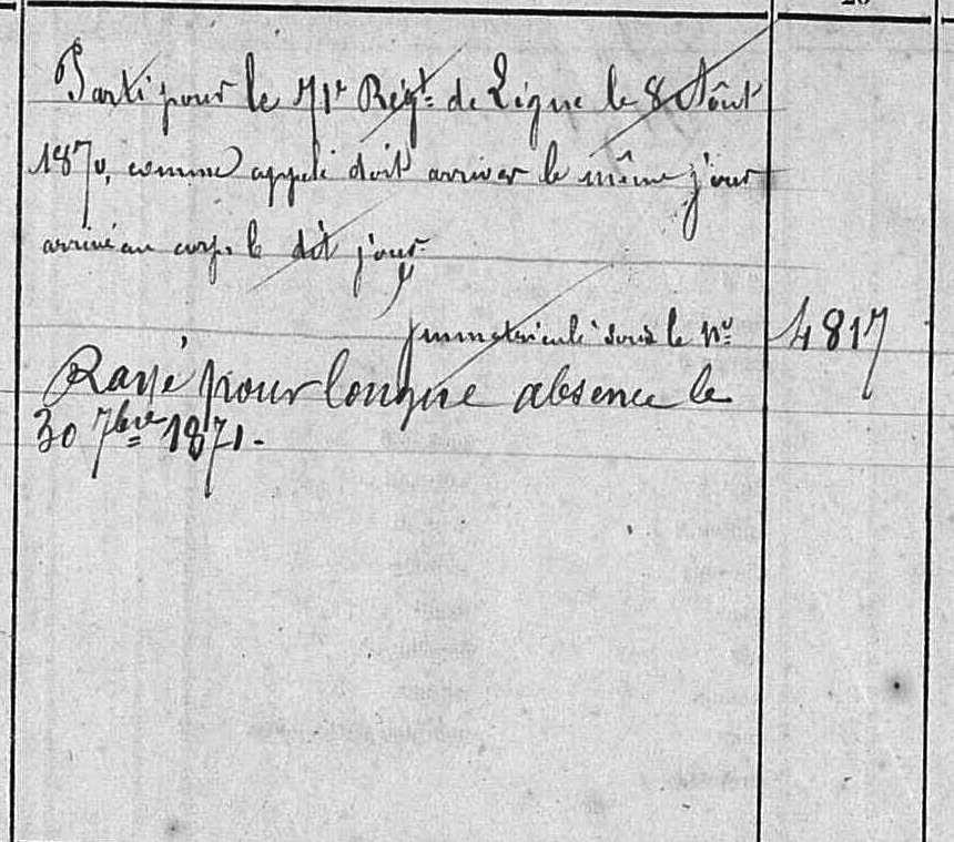 1870, il est rayé pour longue absence le 30 septembre 1871 !