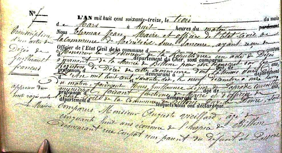 Et retranscrit à la mairie de Ménétréol en 1874 !