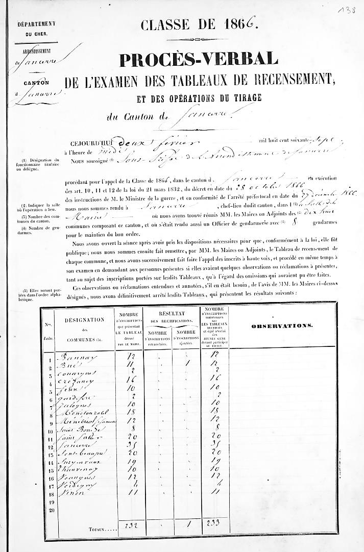 Le recrutement local se déroule à Sancerre chaque début d'année (en 1866 le deux février)