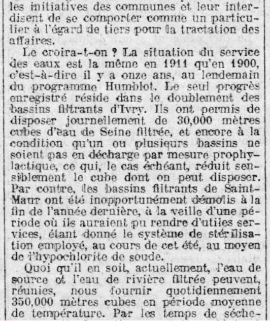 La qualité des eaux dont dispose la ville de Paris laisse aussi passablement à désirer :