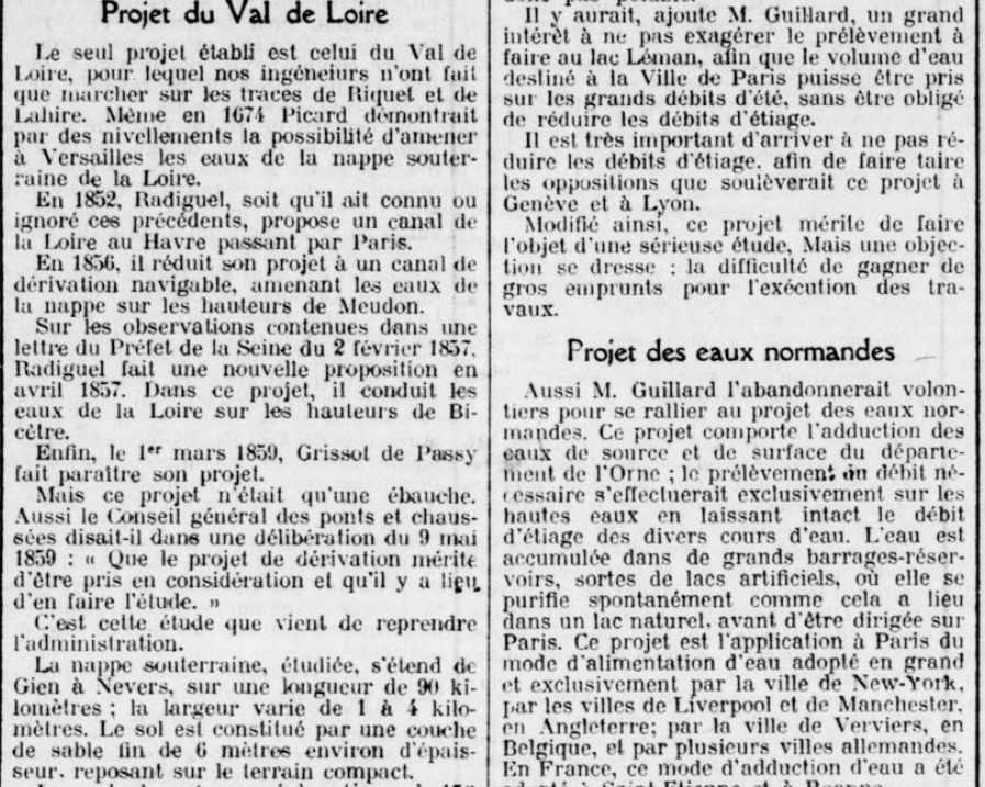 Dès avant 1858, la ville de Paris cherche de nouvelles ressources en eau, d’abord en dérivant des sources du bassin de la Seine :