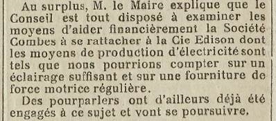 le branchement sur le réseau de la société Edison qui reprendra effectivement les installations à partir de 1921