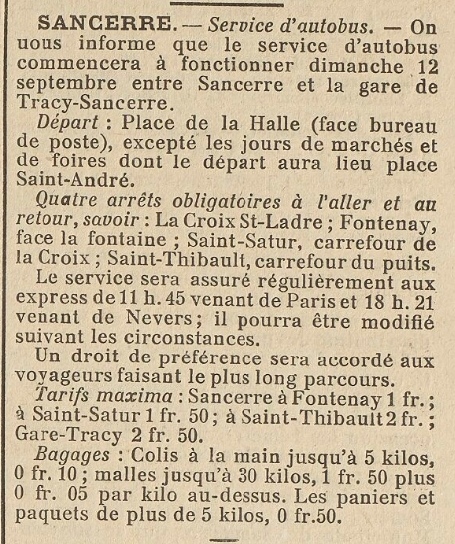 D'abord, après plusieurs essais infructueux, pour desservir le Sancerrois entre la gare (Tracy-Sancerre sur la ligne Paris Clermont) située de l'autre côté de la Loire et Sancerre |