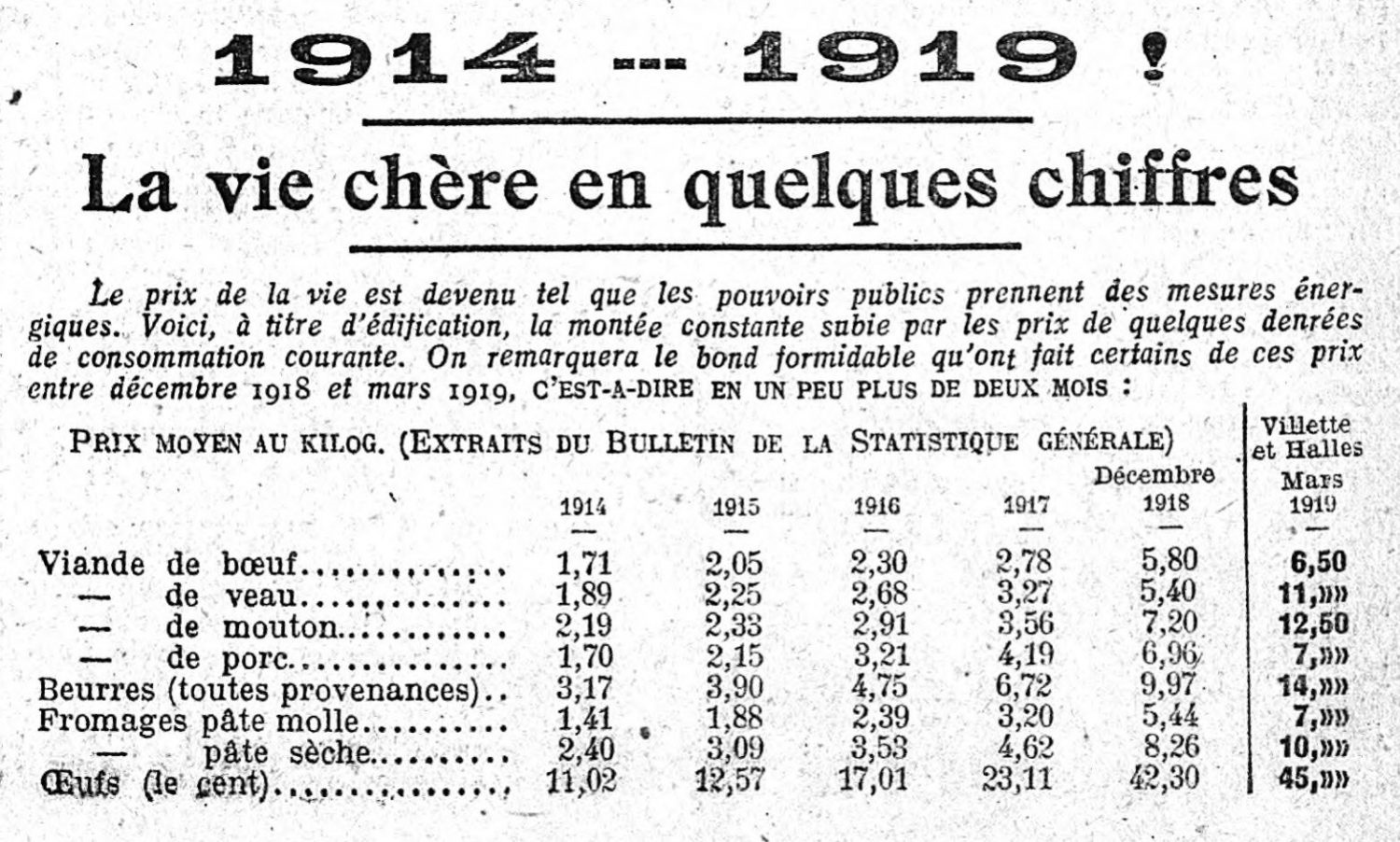 A la fin de la guerre on estime que les prix ont été en moyenne multipliés par 2 par rapport à 1914 !