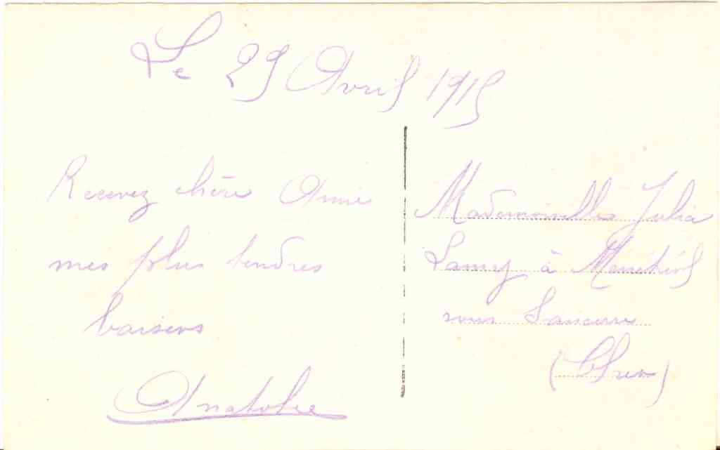 DIOT Emile Gabriel Charles né le 19 février 1877 134ème régiment d'infanterie décé le 20 juillet 1915 suite à ses blessures à l'Hopital mixte de Commercy (Meuse) médaille militaire à titre posthume (JO du 1er octobre 1918) « excellent soldat, brave et dévoué »